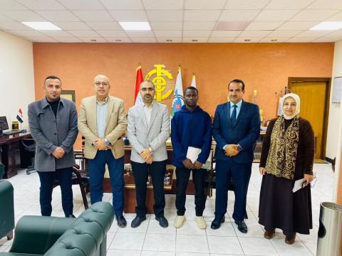 ضمن برنامج المنح الدراسية في العراق وبتوجية من قبل السيد مدير قسم شؤون الاقسام الداخلية أ.م.د محمود شاكر محمود المحترم وبعد إتمام اجراءات معاملة التسكين في الاقسام الداخلية جامعة النهرين تم اصطحاب طالب المرحله الأولى (يسال) الوافد من دولة نيجيريا من قبل السيد مسؤول وحدة الاعلام محمد عبدالكريم صالح العيثاوي المحترم الى كلية هندسة المعلومات في الجامعة لغرض اكمال عملية التسجيل فيها والتقى الطالب الوافد بالسيد عميد الكلية والساده المعاونين المحترمين حيث وضح السيد العميد اقسام الكلية وفروعها واجريت جولة مع الطالب في اروقة الكلية لغرض التعرف على جميع مفاصل الكلية وفي النهاية متمنين مشوار دراسي يسودة النجاح والتوفيق