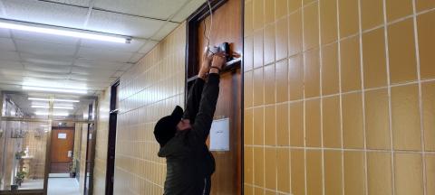بتوجيه من السيد مدير قسم شؤون الأقسام الداخلية (أ.م.د.محمود شاكر محمود) المحترم وبمتابعة شعبة الصيانة والخدمات وبجهود مميزة ورائعة تستمر اعمال (تاهيل منظومة الانترنت) في مجمعات الاقسام في الجادرية حيث قامت كوادرنا بصيانة وابدال اجهزة توزيع منظومة الانترنت في الطوابق وذلك لتسهيل وانجاز الدراسة التي تحتاج إلى بحث عن طريق الإنترنت وبسعات وقدره عالية وهذه الأعمال هدفها تقديم افضل الخدمات لطلبتنا الاعزاء فشكراً لجهود المبذولة من قبل العاملين في الاقسام الداخلية