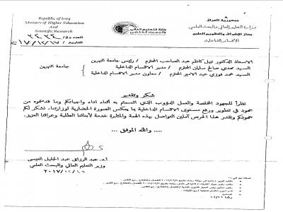 نظرا للجهود المبذولة والعمل الدؤوب في تطوير ورفع مستوى الاقسام الداخلية بما يعكس الصورة الحضارية للوزارة